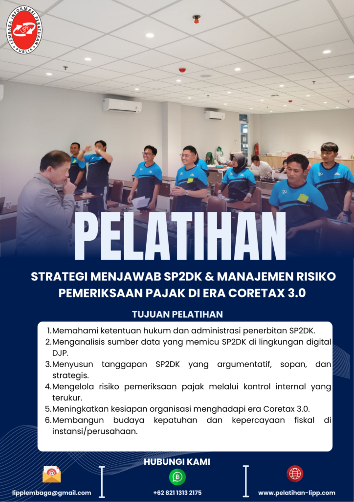 Pelatihan ini dirancang untuk memperkuat kapasitas kepatuhan dan pengendalian risiko pajak di tengah era digitalisasi administrasi perpajakan nasional.Melalui topik SP2DK (Surat Permintaan Penjelasan atas Data dan/atau Keterangan), peserta akan mempelajari secara komprehensif bagaimana menganalisis data pengawasan DJP, menyusun tanggapan profesional, serta mengantisipasi potensi pemeriksaan pajak yang timbul akibat sistem Coretax 3.0 dan integrasi data lintas lembaga.